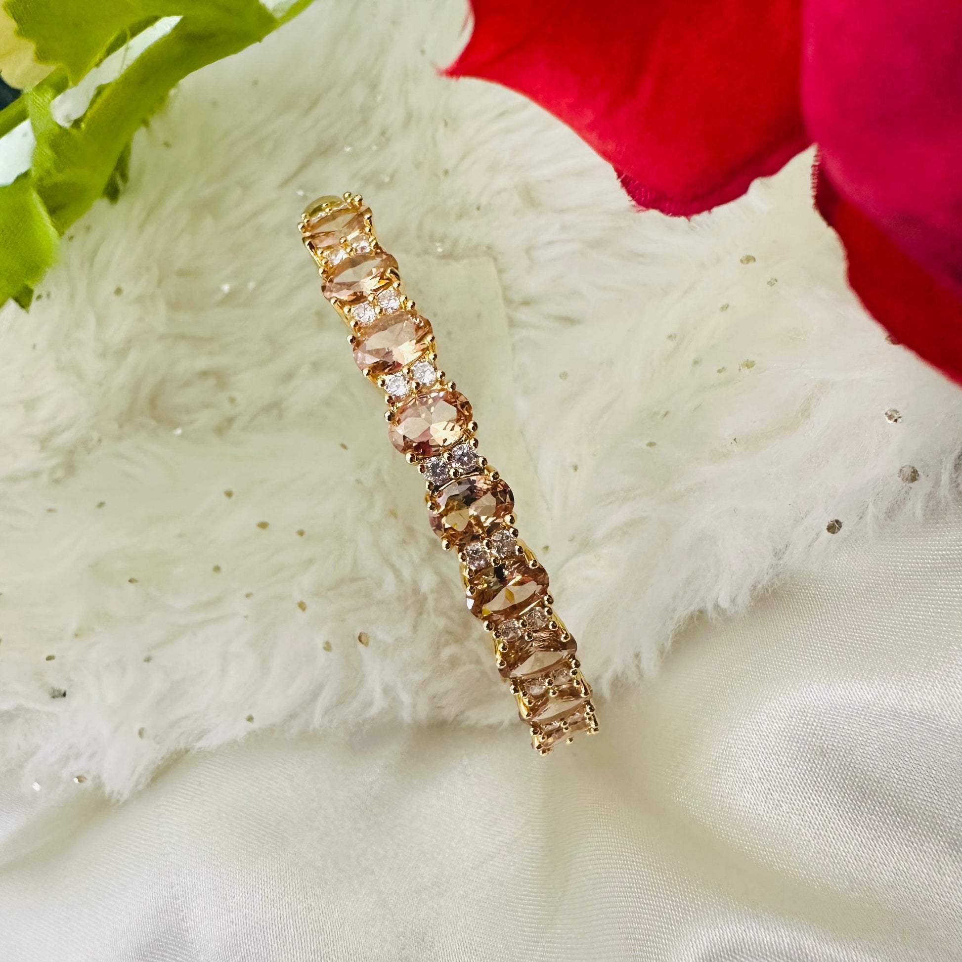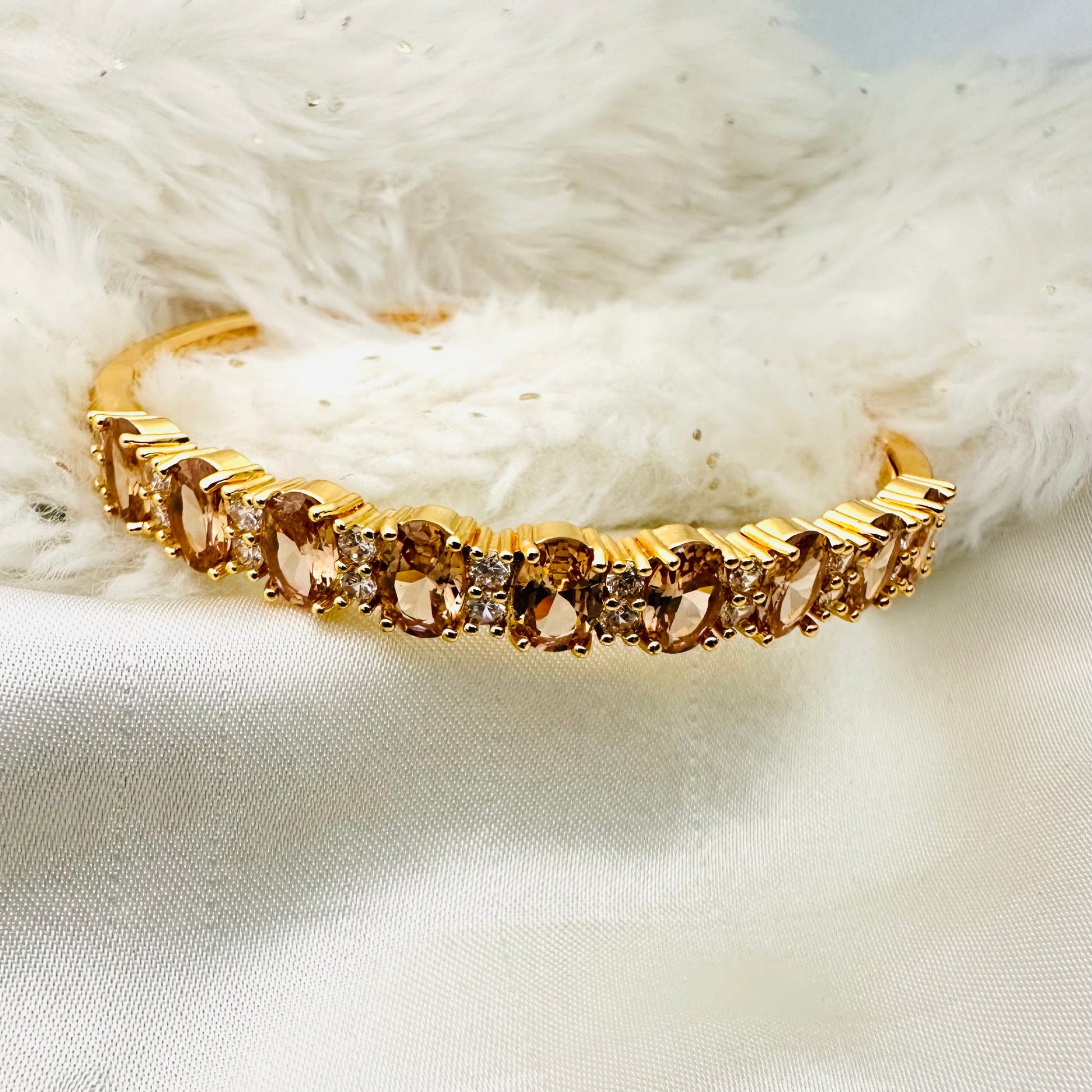 Elevate your style with this classic cuff bracelet featuring shimmering champagne stones. Expertly crafted for a sophisticated look, its sleek design complements both casual and formal attire. The subtle sparkle of the champagne stones adds a refined touch, making it an ideal accessory for those who appreciate timeless elegance. Durable and comfortable, this bracelet offers lasting beauty for everyday wear or special occasions.