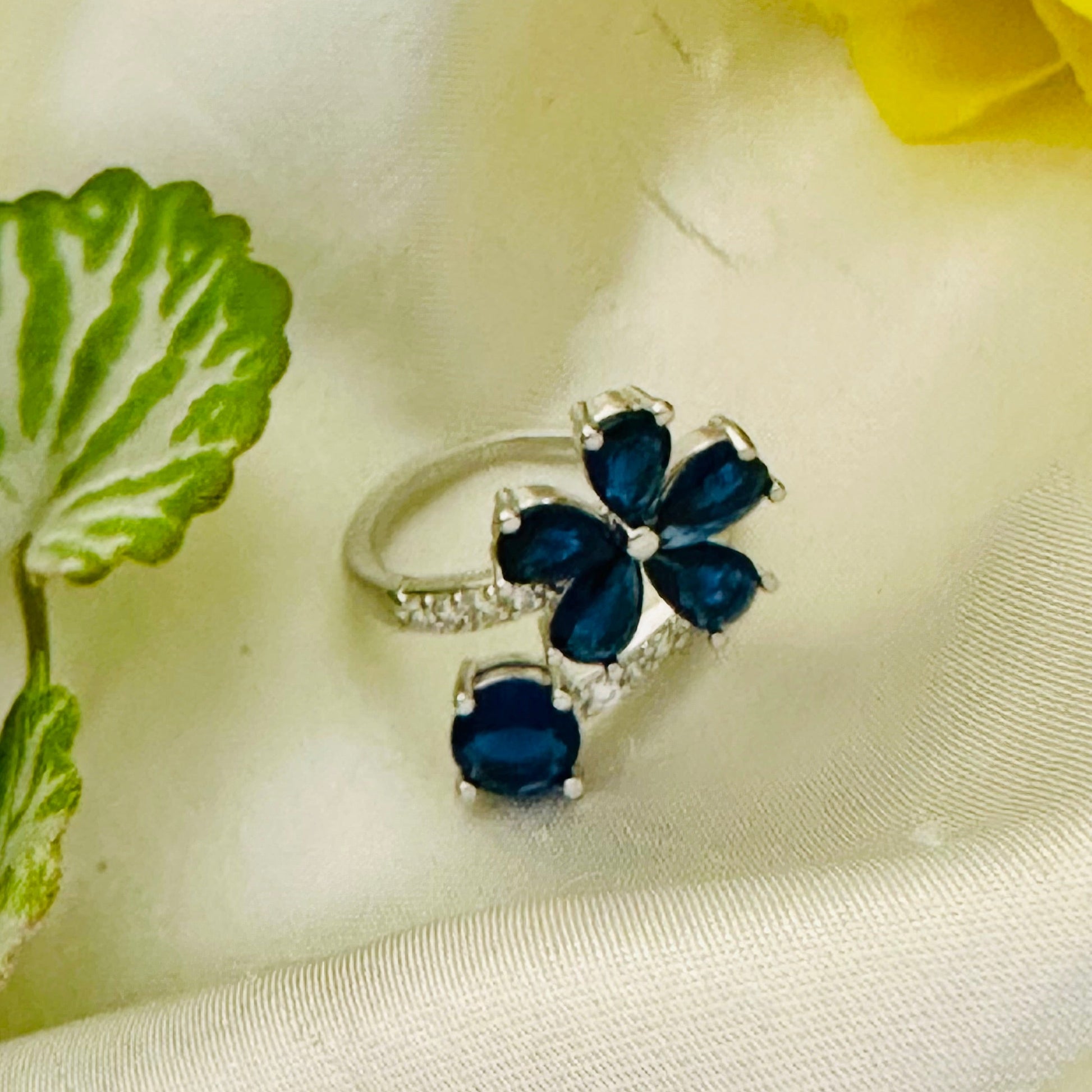 This adjustable 1-carat gold ring showcases a delicate blue flower design, expertly crafted to combine elegance with versatility. Its adjustable band ensures a comfortable fit, while the intricate floral motif and rich purple tones add a sophisticated touch to any ensemble. A refined blend of artistry and functionality for timeless wear.