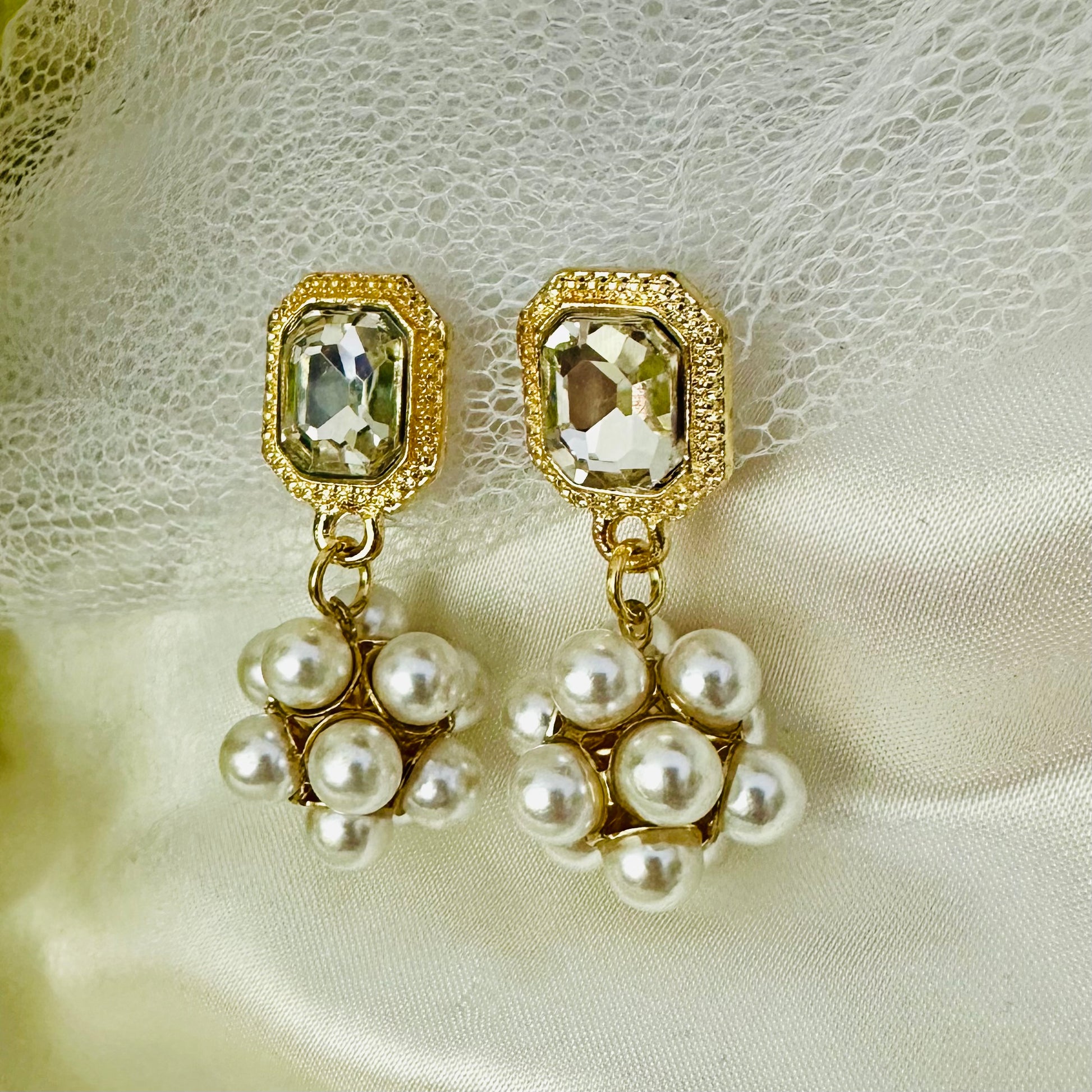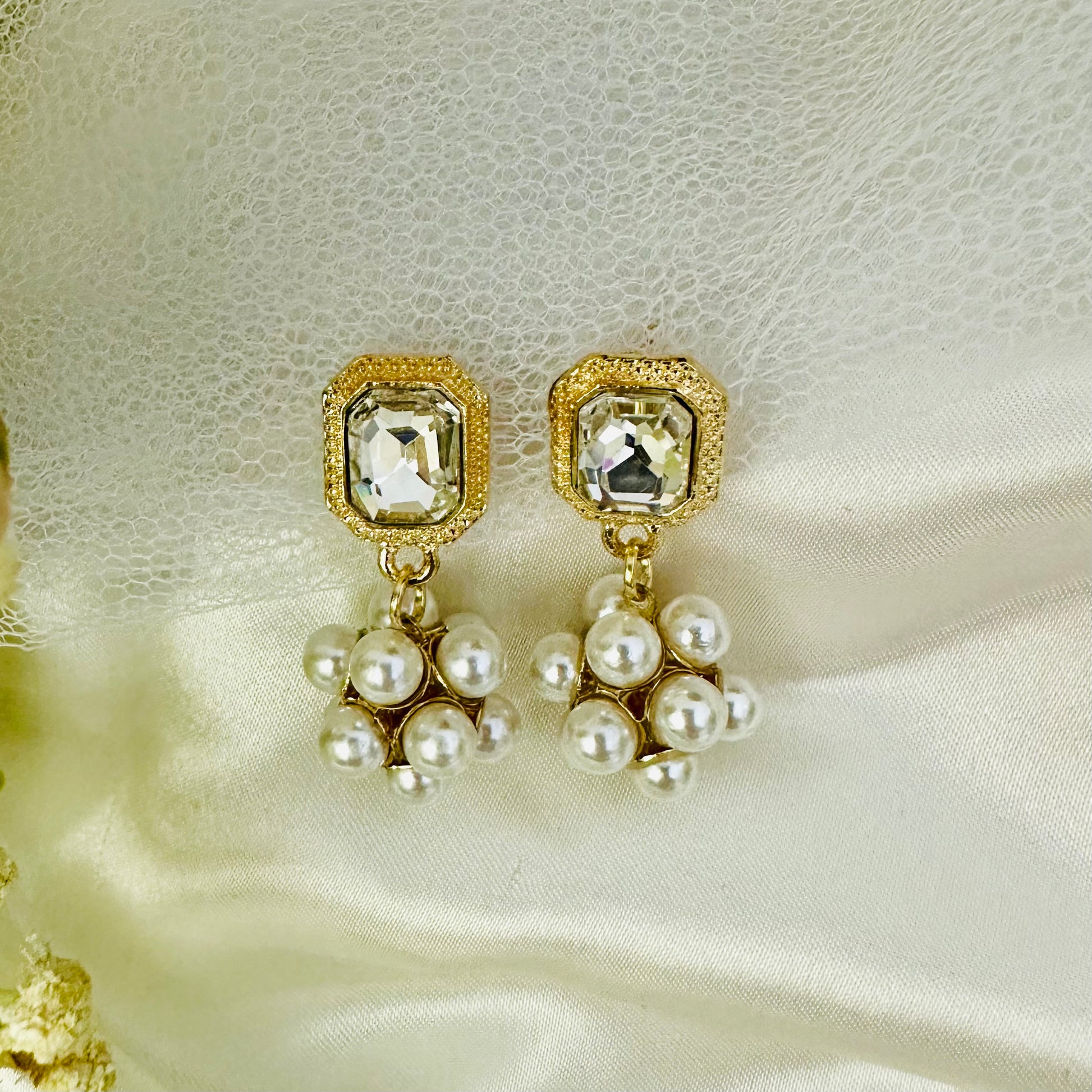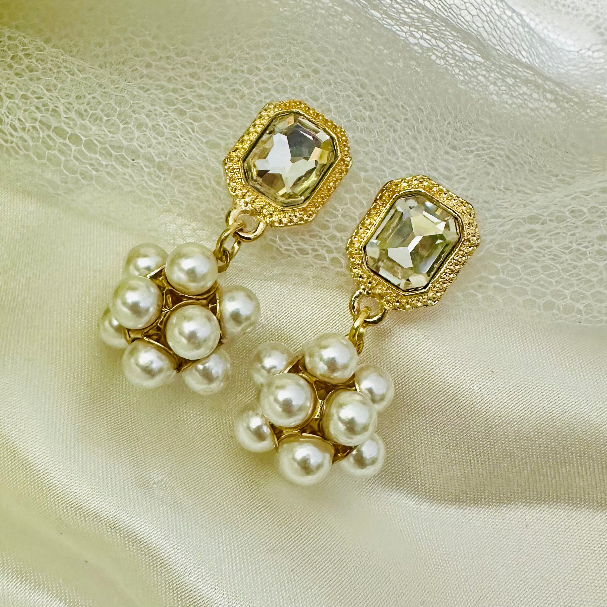 Ivory Bloom showcases a graceful cascade of hanging pearls in soft ivory tones, creating movement and dimension with every wear. The clustered pearl design adds sophisticated texture while maintaining an understated elegance. Perfect for adding a touch of refinement to any occasion, these earrings balance delicate craftsmanship with timeless appeal.