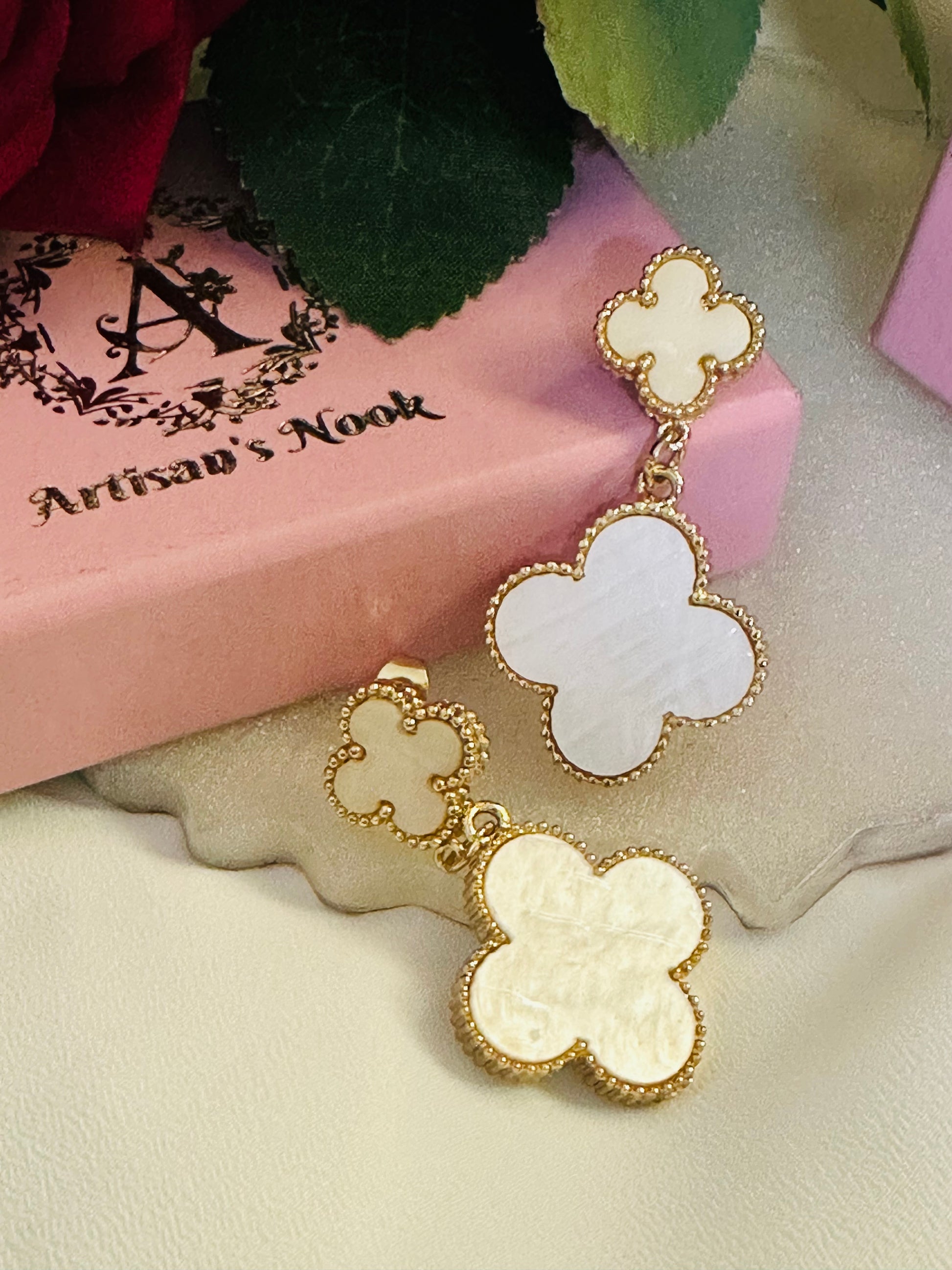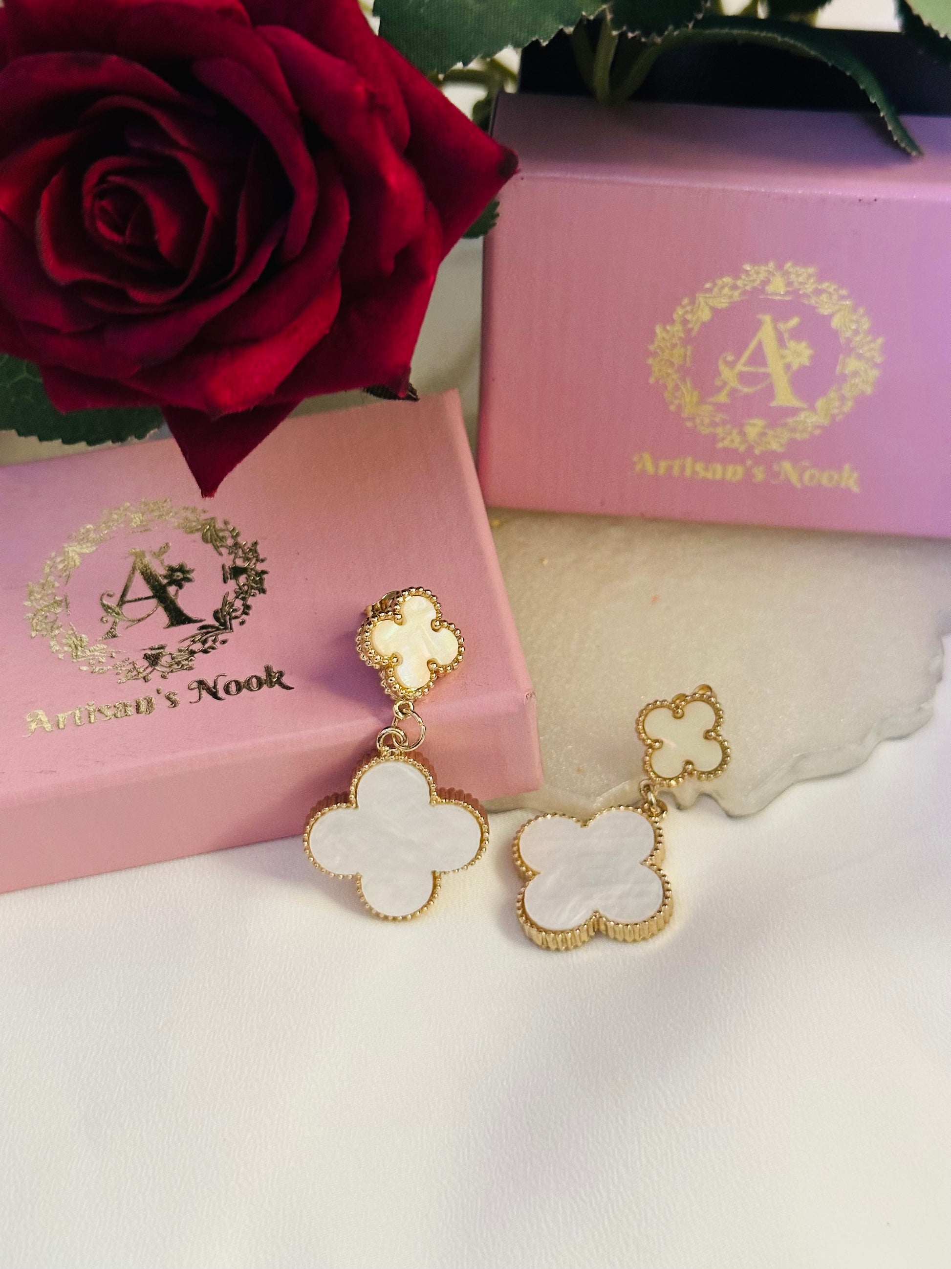 Add some flower power with our Dual Blossom earrings. These playful quad flower dangles are made of durable stainless steel for long-lasting wear. Perfect for adding a touch of fun to any outfit!