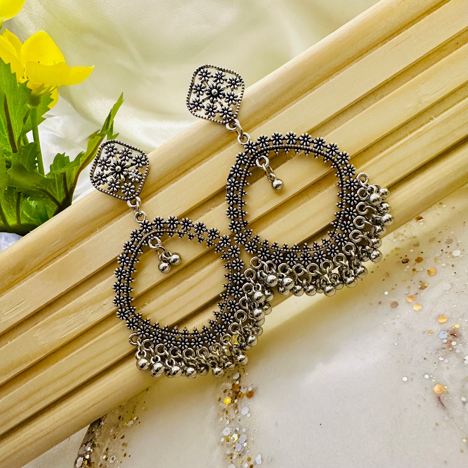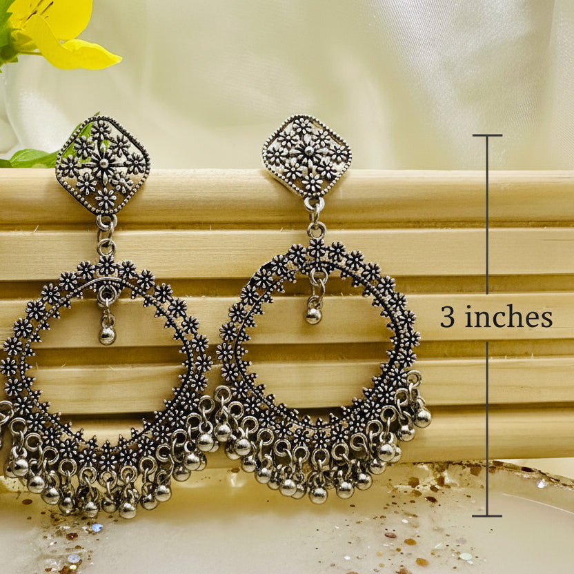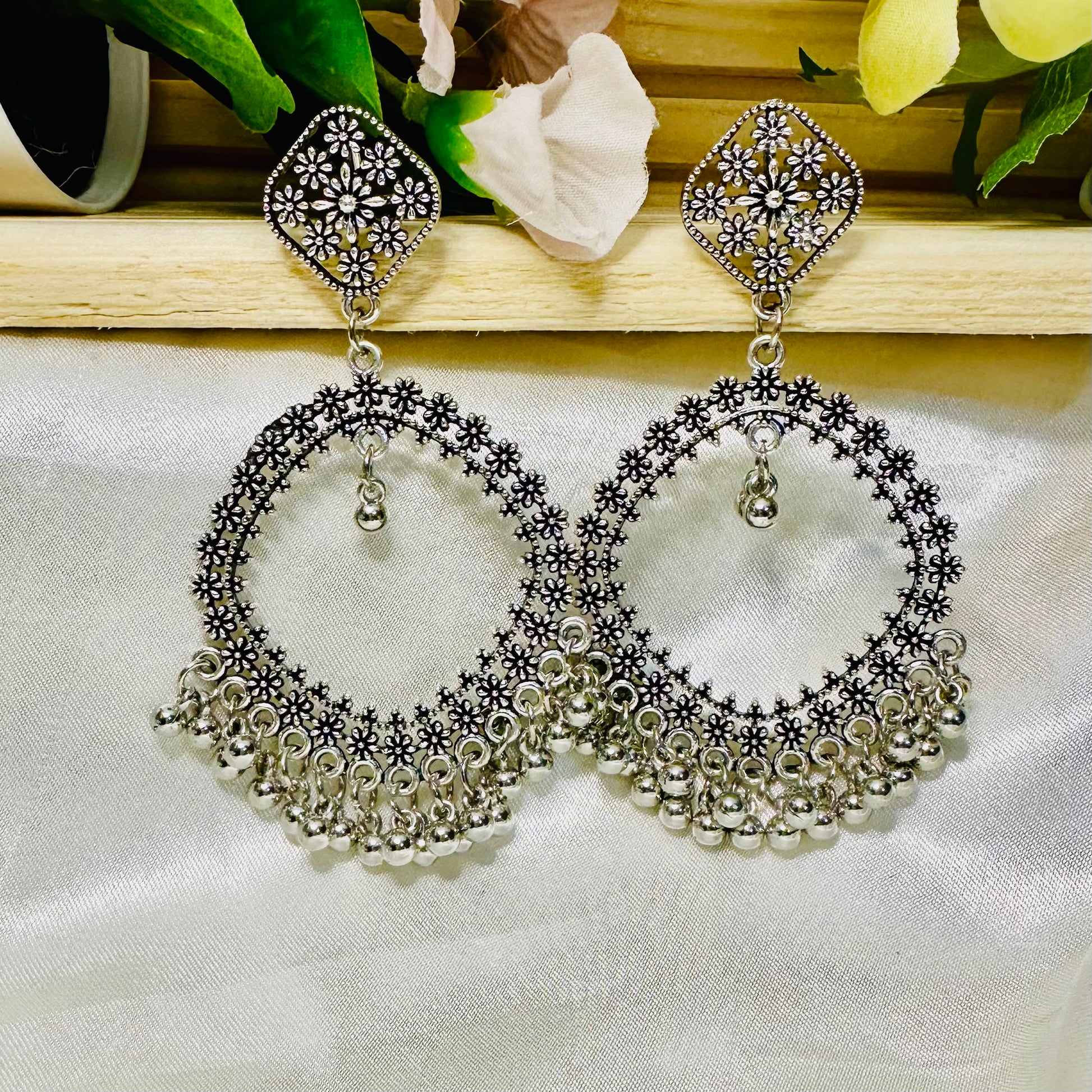 Timeless elegance meets playful charm with these stunning silver Chand bali earrings. Crafted in antique silver with an intricate circular design, each piece features delicate hanging pearls that dance with every movement. Perfect for adding a touch of traditional glamour to any occasion, these beauties blend heritage craftsmanship with contemporary flair. A versatile treasure that transforms both casual and formal looks into something truly special.