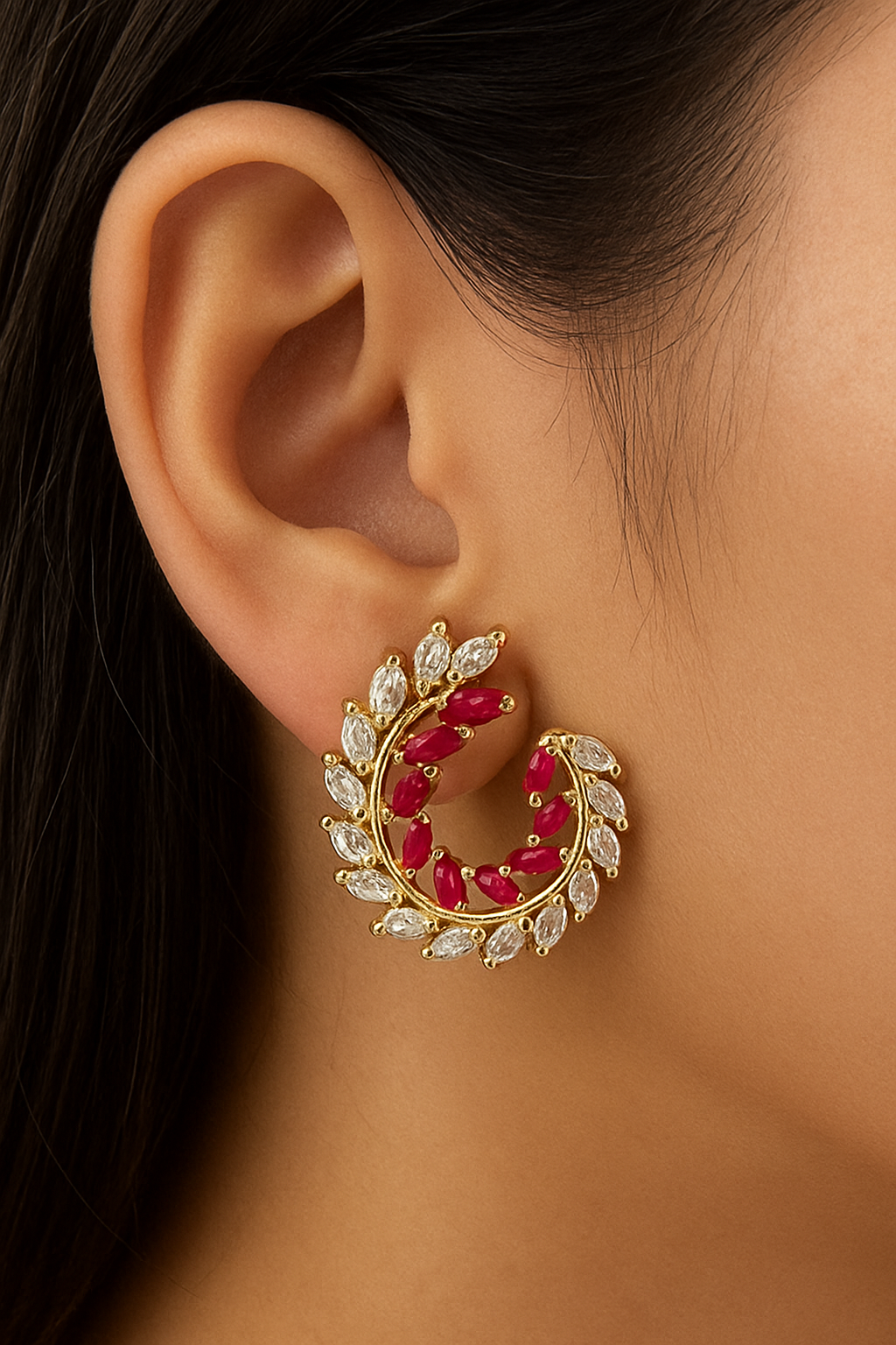 These beautifully crafted earrings feature a unique leafy garland design, expertly shaped to evoke natural elegance. Set with 1 carat gold studs, they offer a refined sparkle that complements the organic motif, making them an exquisite choice for sophisticated style.