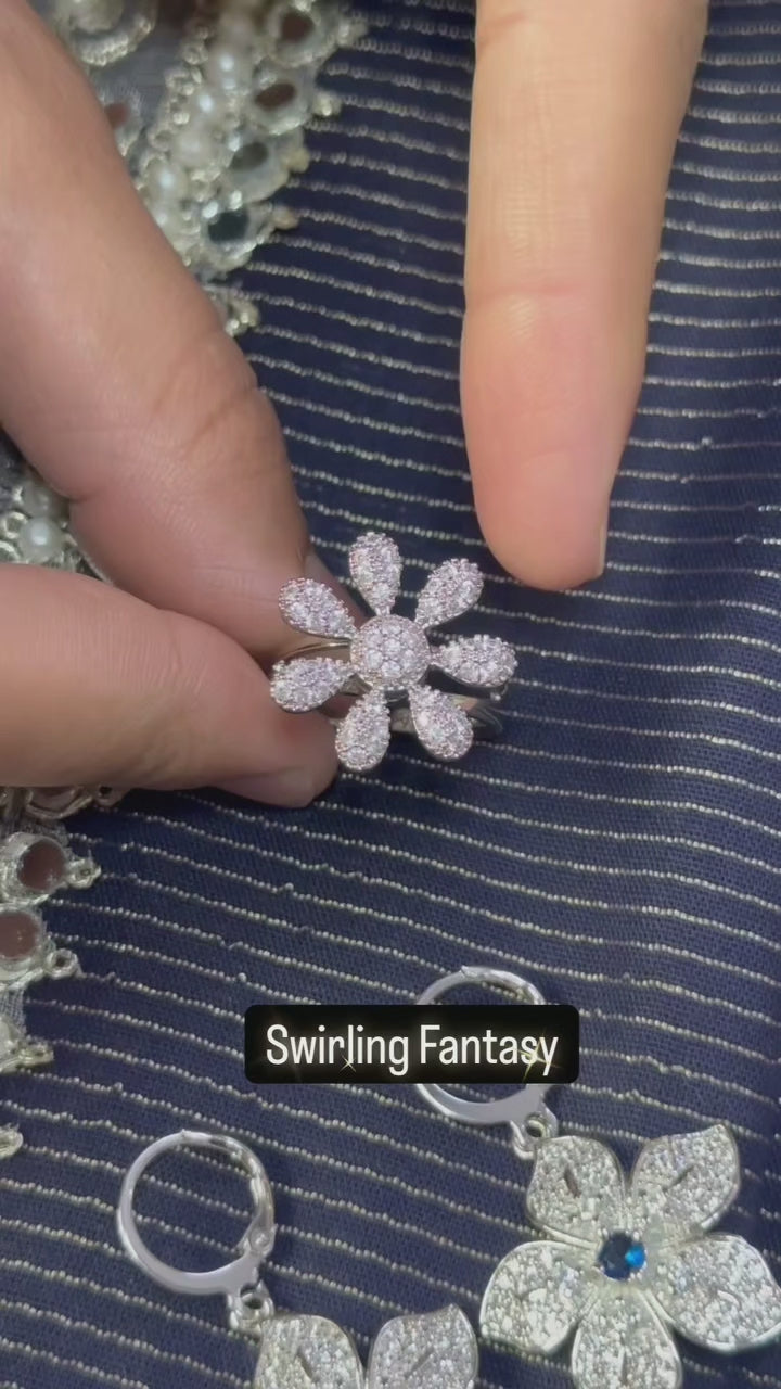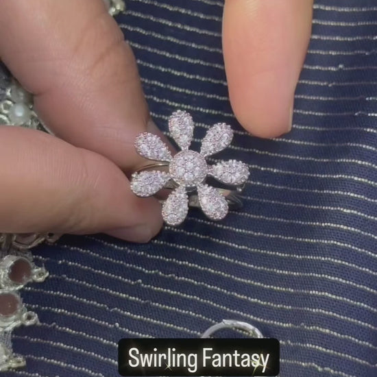 Indulge in the captivating beauty of Swirling Fantasy. This exquisite ring features shimmering silver stones crafted in an alluring floral design that gracefully swirls. Elevate any look with this elegant piece, perfect for those who appreciate refined luxury and timeless elegance.