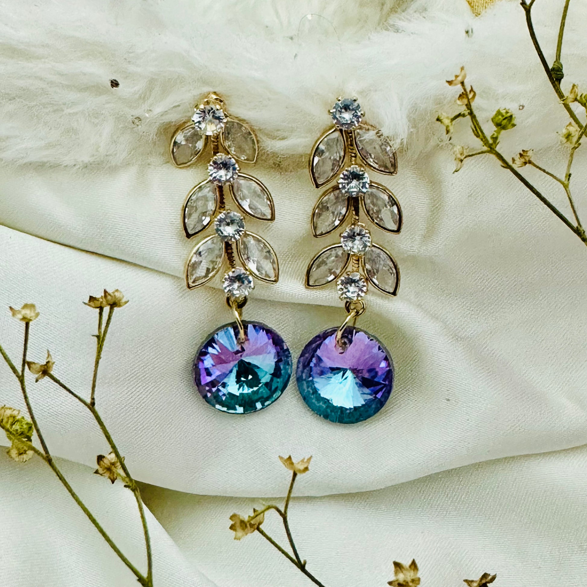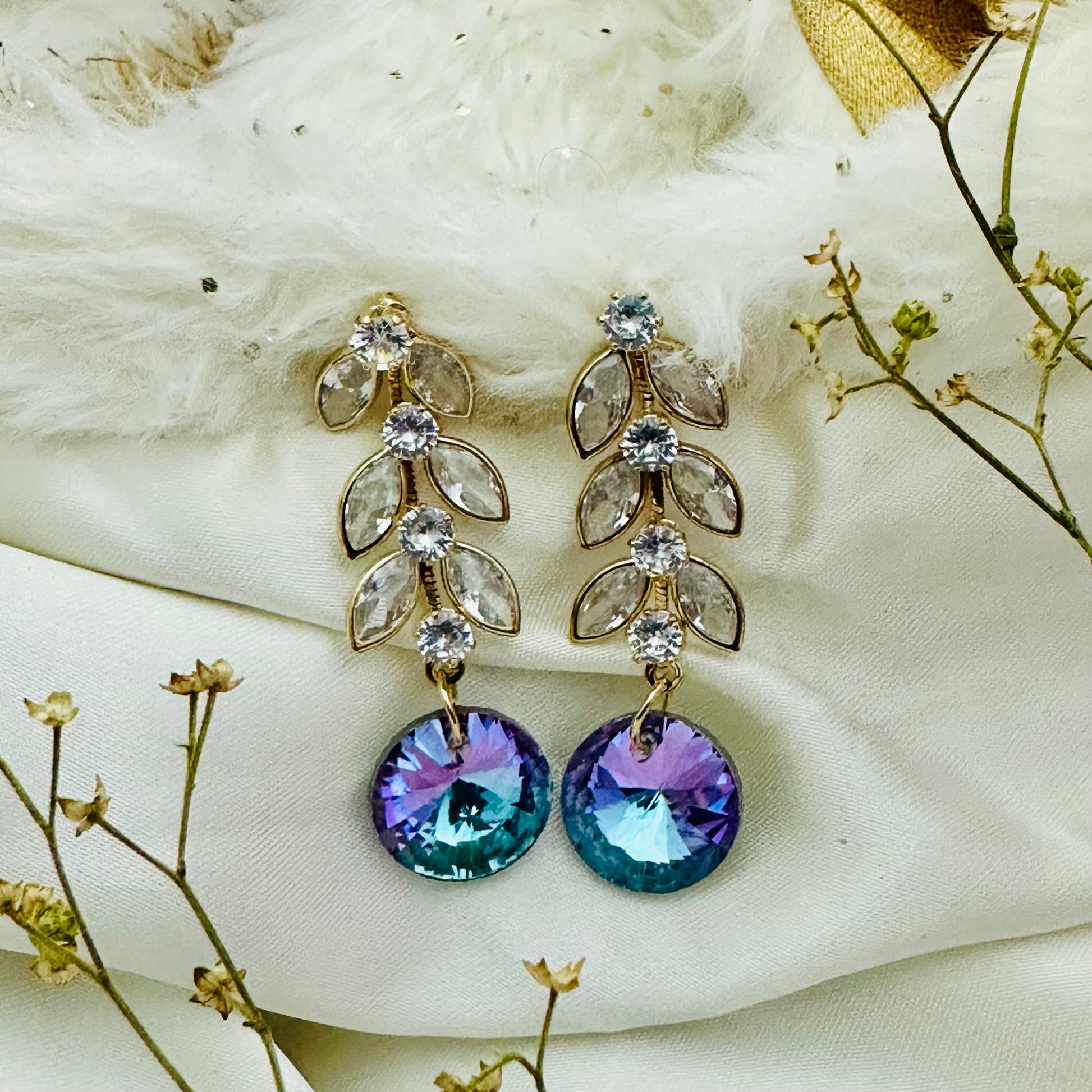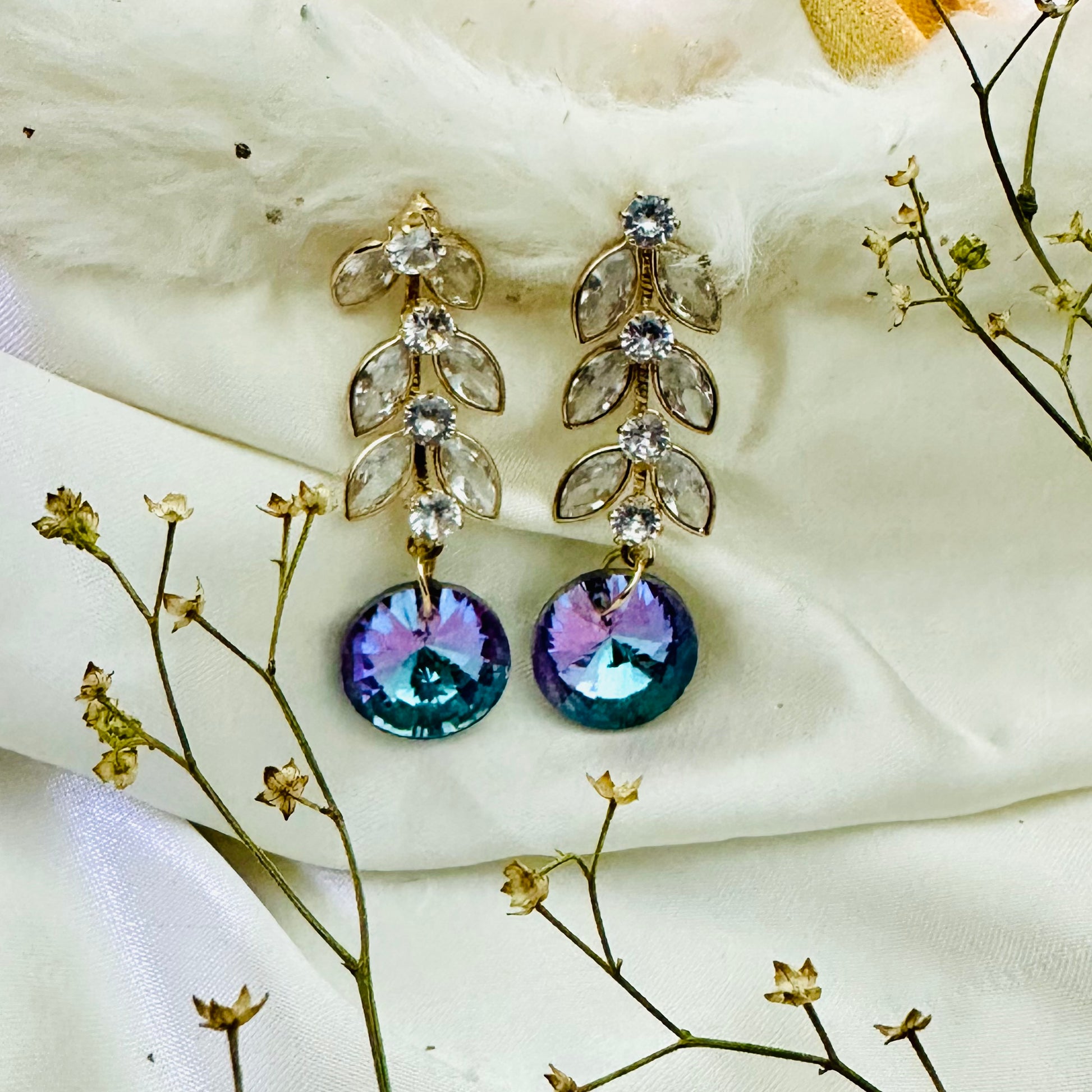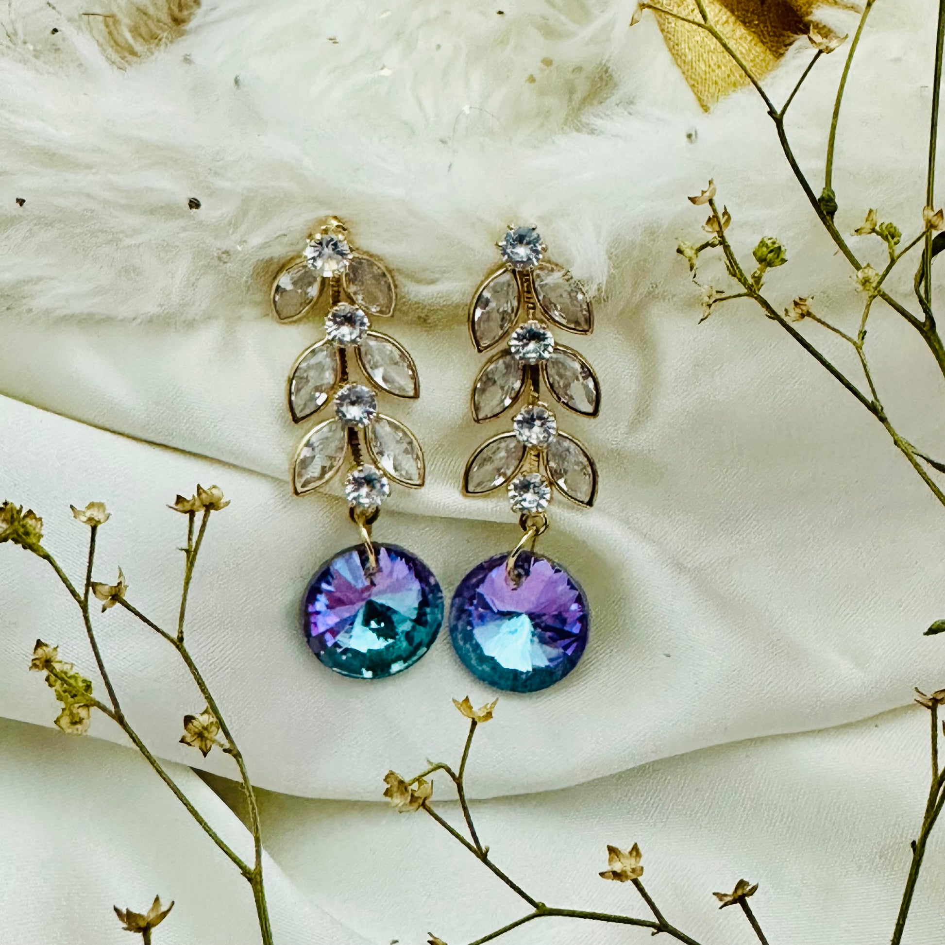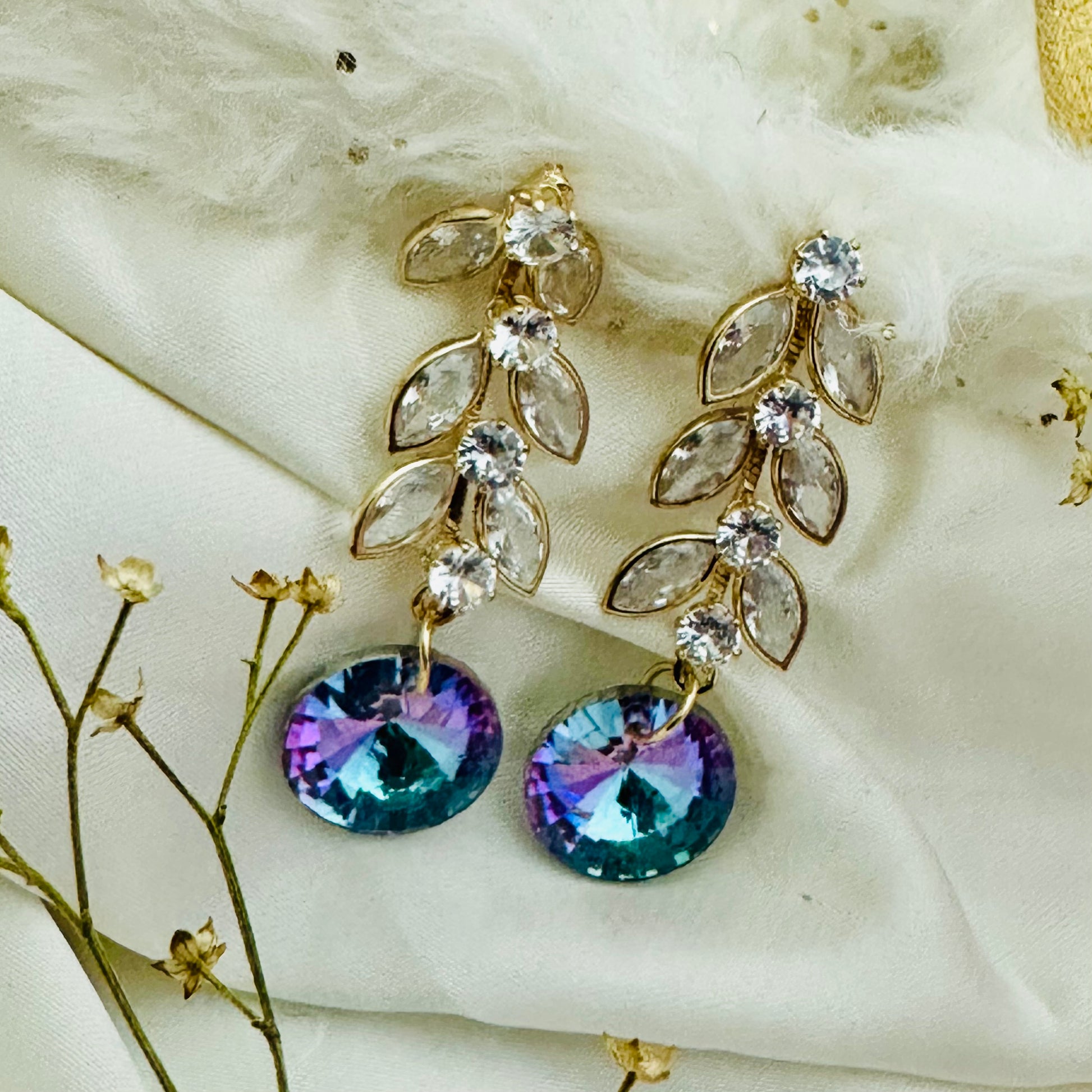 Introducing Verdant Gleam - the perfect pair of drop earrings for those seeking a touch of nature and whimsy. Adorned with delicate leaves and a stunning dual colored gem, these earrings will add a unique touch to any outfit. Let your style bloom with Verdant Gleam!